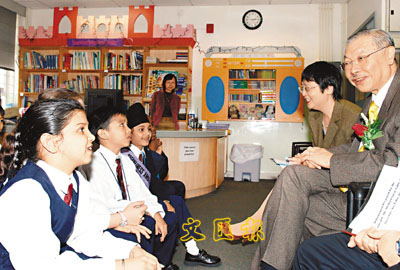 孫明揚昨下午在民政事務專員袁貞爾陪同下,到官立嘉道理爵士小學與師生暢談。該校是一所取錄較多非華語學童的小學,逾9成學生屬非華裔,主要為菲律賓、巴基斯坦、印度及尼泊爾裔兒童。