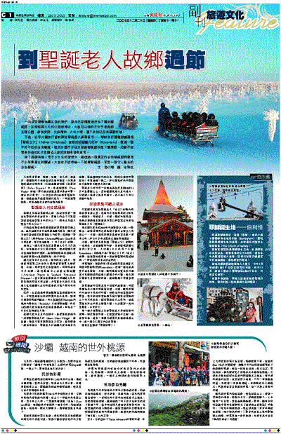 不過,近年英國旅行營辦商在聖誕節大搞新意思──舉辦旅行團到訪據稱是「聖誕之父」(Father Christmas)家鄉的芬蘭羅凡尼米(Rovaniemi),度過一個不折不扣的白色聖誕。雖然外國不少地方每逢聖誕節均是下雪季節,但總不如置身於這位紅衣長鬚老人家的故鄉來得有意思。