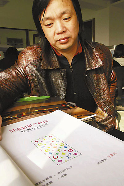 ■武漢商人王軍向記者出示他申請的中國「路易威登」商標的批文。 本報記者俞鯤 攝