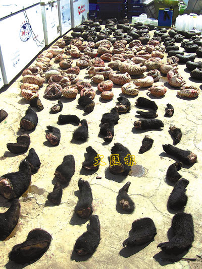 ■ 除了膽汁,熊掌的美味及高價也為黑熊引來殺身之禍。圖為工商部門繳獲的非法銷售的熊掌。