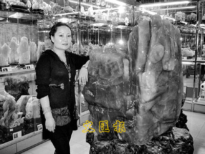 ■「岫玉之王」及其收藏者汪女士。嚴夏年 攝