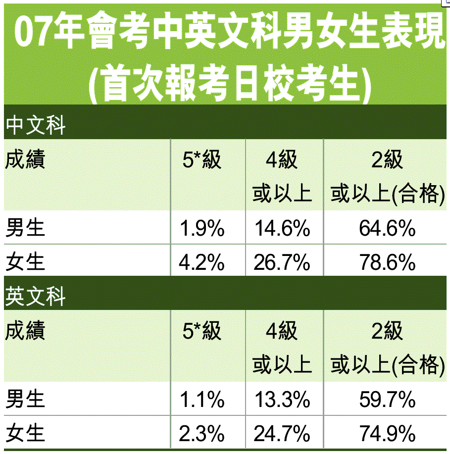 會考中英文奪5* 女多男逾倍 (圖)