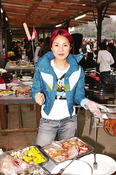 【本報訊】(記者 黃佩麗)楊千嬅昨日與400名來自香港、上海、廣州及成都等地的粉絲舉行燒烤派對預祝聖誕節,由於內地粉絲難得見到偶像,一見面就把千嬅重重包圍拍照,不過大家都十分守秩序,沒有造成混亂,雖然千嬅曾自誇最叻是燒腸仔,但現場所見,她卻將腸仔燒到變成炭,不知有沒有誰敢吃,十分搞笑。