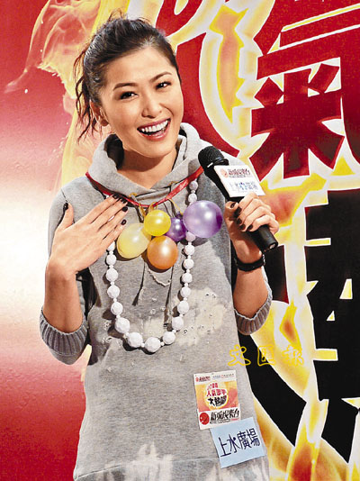 【本報訊】(記者 李思穎)周麗淇(見圖)、泳兒、孫耀威、鄭融等歌手昨日出席新城「07樂壇人氣歌手大熱唱」,據知原定在出席名單之內的金牌歌手傅穎未有現身,公關人員解釋對方有事來不到,看來金牌和新城關係繼續惡化,未得到解決。