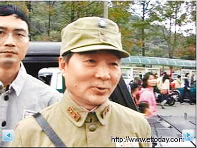 ■穿上仿四行倉庫軍服的老兵表示,「我來守陵寢」。網上圖片