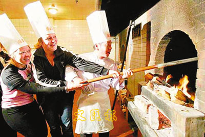 ■全聚德擬用「電爐」替代「人工」烤鴨,恐怕再難見到老外跟師傅學烤鴨的景象啦! 網上圖片