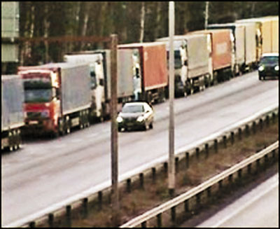 節假前夕,俄羅斯貨車在芬蘭邊境排起100公里長的車龍(見圖)。