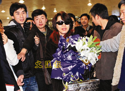 「貴州的朋友大家好,貨真價實的蔡琴來到貴陽了!」這是昨日傍晚6時許,蔡琴下飛機後說的第一句話,兩位70歲左右的老年歌迷也手捧著鮮花到機場接機,這次得知蔡琴提前到達,兩位70歲的老人特意從清鎮趕到了龍洞堡接機,並將手中的鮮花贈送給了蔡琴。