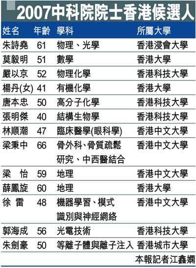 中科院副院長李靜海表示,該院2007年院士增選共產生有效候選人287名,經過推薦、公示、通訊評審、會議評審、選舉等環節,最終選舉產生29名新院士。新增院士有6名來自數學物理學領域;6名來自化學領域;7名來自生命科學和醫學領域;4名來自地學領域;1名來自信息技術科學領域;5名來自技術科學領域,共29名。截止目前,中國科學院院士總人數為710人,外籍院士53人。