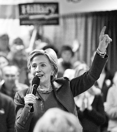 ■希拉莉前日在艾奧瓦州的學校(圖)、消防局等四出拉票。法新社