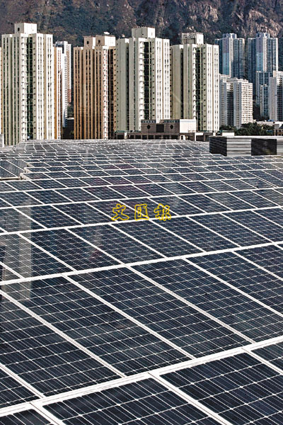 ■樓宇節能設備—太陽能發電板。本報記者劉國權 攝