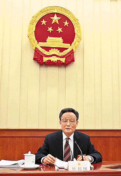■全國人大常委會委員長吳邦國強調,人大決定是嚴格依法按程序作出的 。 中新社