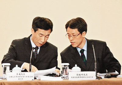 ■李飛和張曉明歸納出席座談會人士提問,以作整體回應。 本報記者曾慶威 攝