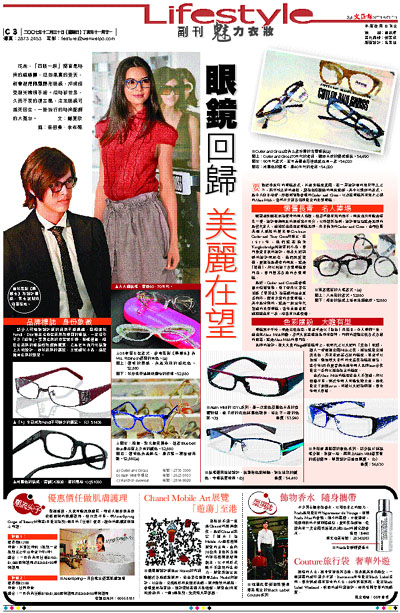 要數近季流行的眼鏡款式,非粗身鏡架莫屬。在一眾設計師的鬼斧神工之下,將平淡乏味的粗框,變為色彩繽紛的潮流配飾,其中以歐洲的款式,最令人刮目相看,好像剛登陸香港的Cutler and Gross,以及在眼鏡界有鬼才之稱的Alain Mikli,當然不少得各名牌推出的光學眼鏡。