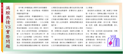 最近因天水圍區接二連三地發生不快事情,社會人士一窩蜂地去關心本是好事,但其他區份同樣存在很多社會問題,應該不是從根本出發找出原因嗎?要找出這些原因,例如內地和港人婚姻、老夫少妻、單親家庭、托兒、就業,樹立正確的價值觀,求人不如求己。