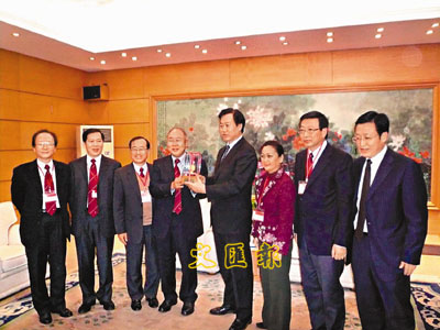 ■莊學山團長(左四)等致送紀念品予大連市市長夏德仁(右四)。