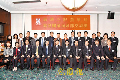 【本報訊】國家民政部交流團一行16人在國家民政部外事司康鵬司長率領下,應東華三院邀請,日前訪港參觀東華屬下服務單位。