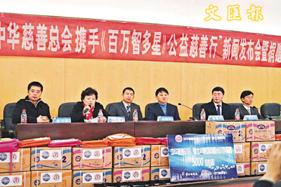 ■中華慈善總會攜手貴州電視台合辦《百萬智多星》2008公益慈善行,與廣東雅士利集團向貴陽「曙光小學」捐贈價值10萬元的奶製品和文具。