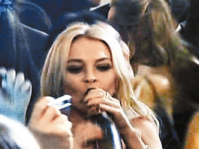 ■蓮莎大模大樣飲香檳,成為荷里活媒體話題。美聯社