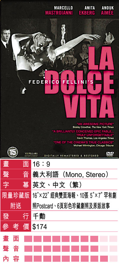 影片描述撰寫花邊新聞的記者Macello在虛浮的上流社會中目擊種種荒淫無恥的生活,而自己亦身陷其中不能自拔。好友Steiner的出現,曾經讓他以為純淨幸福的家庭生活是自己重生與拯救的希望,但這希望卻很快破滅--Steiner將兩個幼兒擊斃然後自殺在家中。「你以為我很崇高,其實走近點,發現我很渺小。」Steiner看似完美的生活下暗湧著甚麼,Marcello也許無力去深究,他無言地站在陽台上望向遠方,觀眾則在那背影中看到了絕望深沉的影子。