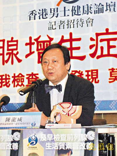 泌尿科專科醫生陳龍威(見圖)稱,前列腺是男性的生殖腺,包圍著尿道,所以前列腺增生,會造成小便困難。他稱,前列腺增生症是男性正常衰老的生理過程,現代男性生活節奏急速,工作壓力大,造成提早退化的現象。他稱,此症亦有遺傳因素,父親患病兒子同樣染症的風險高4倍,而兄弟患病風險則增6倍。