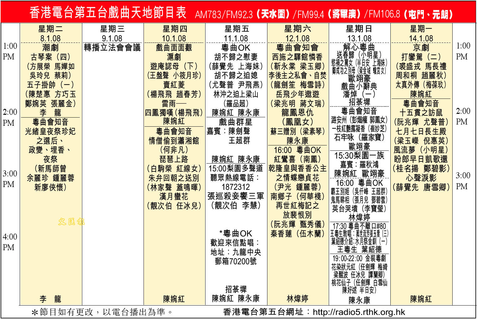 香港電台第五台戲曲天地節目表 (2008-01-08) (圖)