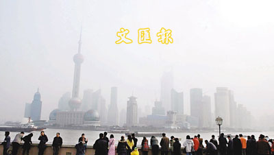 8日凌晨,上海開始出現強濃霧天氣,氣象台連續發佈大霧警報,警報級別上升至最高級別紅色。強濃霧已對上海交通造成較為嚴重的影響。據統計,浦東機場有130多個航班受到不同程度的影響。圖為遊人在大霧瀰漫的上海外灘大道參觀。新華社
