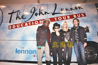 Beatles成員約翰連儂遺孀大野洋子周一在幾位音樂人的陪同下,出席消費性電子展覽,為以約翰連儂命名的高科技音樂教育巴士進行揭幕儀式。74歲的大野洋子表示,「這架巴士約翰會感到喜愛。」據知,這輛巴士包含錄音的技術,由超過12個機構作贊助。據知,這輛教育巴士將會到美國及加拿大的學校等地方,教導小朋友音樂方面的事物及讓他們了解專業的歌曲錄音情況。而有份出席活動的嘉賓Will.i.am亦說,「能夠用巴士作為錄音室且與小朋友互動是一件開心的事情。」 ■文:龜子