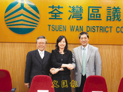 ■荃灣區議會昨選出正、副主席,由周厚澄(左)及鍾偉平成功連任。本報 攝