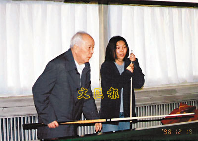■萬里閑時喜與孫女萬寶寶打桌球,此外他也喜歡看電視讀報紙。 資料圖片