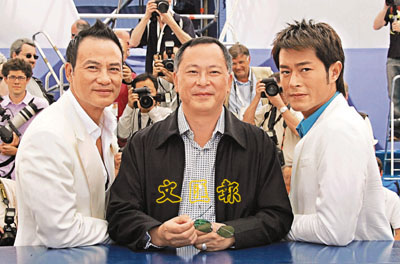 ■杜琪峰(中)蜚聲國際,近年成為國際大型影展的常客之一。 資料圖片