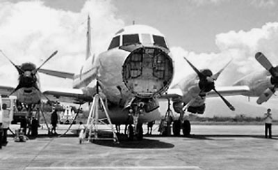 ■與中國戰機相撞的美軍EP-3偵察機。 網上圖片