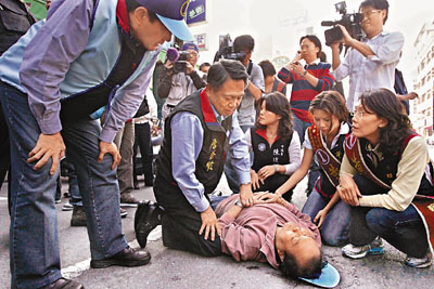 【本報訊】上周五在台灣高雄採訪立委選舉時,隨同國民黨總統參選人馬英九拜票期間飛身跳上採訪車墮地撞傷頭部的香港亞洲電視台攝影師李東杰,病情惡化,前晚再次接受手術,主診醫生表示,李東杰的昏迷指數由原來的9分惡化為3至4分,即使好轉也會影響語言中樞的恢復,甚至造成右側癱瘓。
