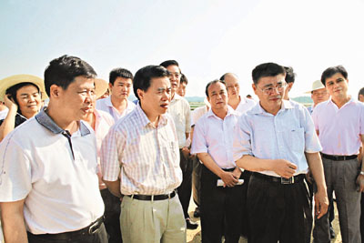 ■省長黃華華(左二)在汕尾市品清湖視察防洪工程。