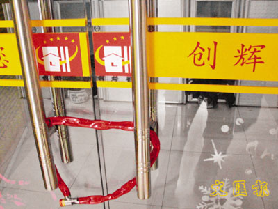 ■「鐵將軍」把守創輝的廣州公司大門。本報廣州傳真