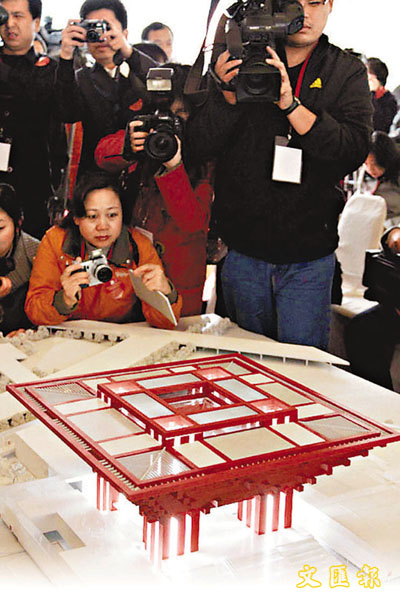 ■上海世博會中國館的設計雛形,傳媒爭相拍攝。