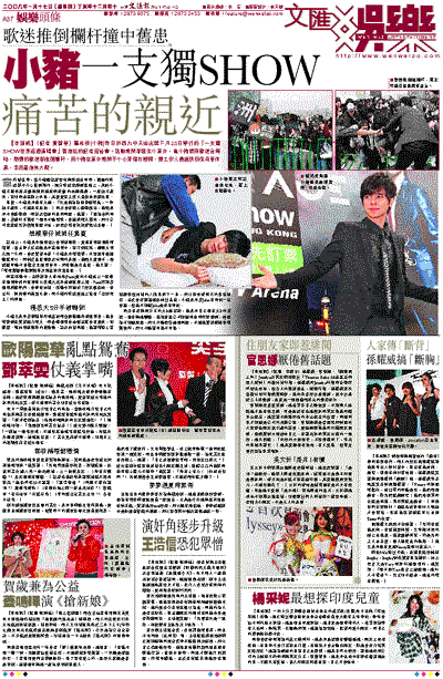 【本報訊】(記者 黃碧華)羅志祥(小豬)昨日於西九中天地出席下月23日舉行的「一支獨SHOW世界巡迴演唱會」香港站的記者招待會。活動期間卻發生小意外,當小豬想與歌迷合照時,熱情的歌迷卻推倒欄杆,而小豬在意外期間不小心弄傷右膝頭,要工作人員攙扶回保母車休息,幸而最後無大礙。