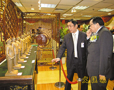 ■裕華職員向徐展堂(右一)介紹由5位陶藝大師攜手創作的陶藝組塑─《十大元帥》。