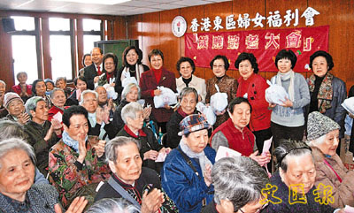 【本報訊】(記者 鄭群)農曆新年將至,香港東區婦女福利會為向區內長者送上節日祝福,日前在會所舉行一年一度的「歲晚敬老大會」,大會邀請中聯辦特邀顧問陳鳳英、社會福利署東區及灣仔區福利專員莊冼瑞愉蒞臨主禮。主席丁毓珠率眾姐妹陪同嘉賓,向區內600名長者派贈禮物包及敬老利是,祝長者新年快樂,身體健康。
