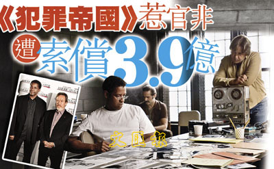 一群已退休的美國司法部緝毒署(DEA)探員,向投資開拍近期熱門大片《犯罪帝國》的美國國家廣播環球公司(NBC Universal)提出訴訟,指以真事改編作賣點的該片錯誤把他們的身份扭曲成壞蛋,和扮演毒梟的丹素華盛頓打對台。以此為由,他們現要求至少約3.9億港元懲罰性賠償,若勝訴的話那麼電影公司確會損失慘重。