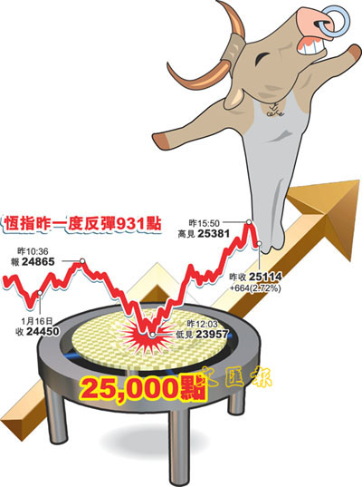 【本報訊】(記者 李永青、林淑儀)外圍股市不穩或拖累港股走勢,摩根士丹利昨日發報告指出,港股經調整後目前已跌至低於合理值,將港股評級展望由「審慎」調高至「與大市同步」,並料恆指今年底可見3萬點,而匯豐維持恆指年底31,000點的目標,瑞信更樂觀料年底恆指見35,000點。