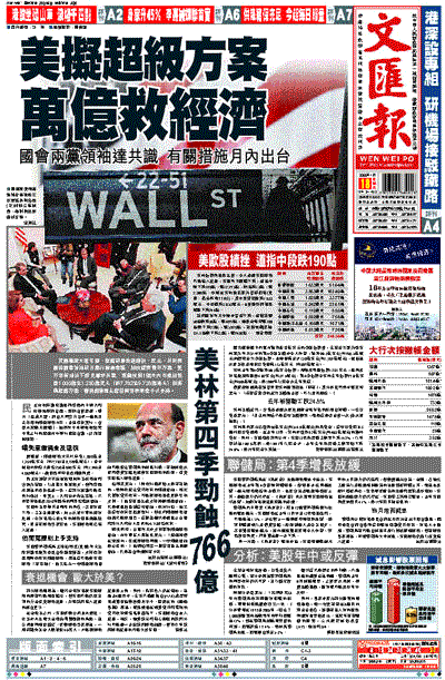 與此同時,白宮昨天亦支持採取刺激經濟措施。布什發言人弗拉托表示:「總統相信在短期內,要處理經濟問題,一些刺激措施是必要的。」他與伯南克一樣沒有提出具體措施,只是說會考慮所有方案。 ■路透社/綜合外電消息/彭博通訊社/《紐約時報》