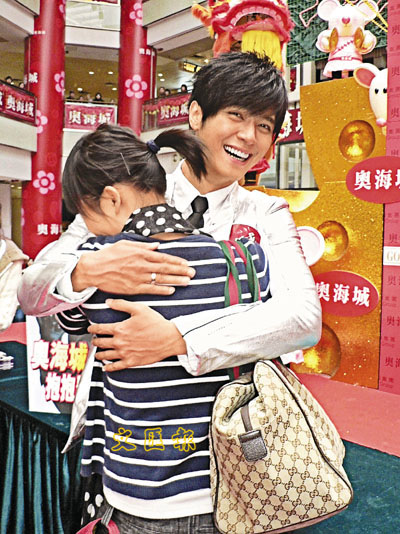 【本報訊】(記者 李思穎)「抱抱羅志祥簽唱會」昨日在奧海城舉行,現場吸引逾千市民圍觀,逼爆商場,小豬跟排前面的50位歌迷抱抱,又為300位fans簽名,不過活動開始前大會先安排10位女歌迷與小豬在台上抱抱,又將fans的手搭在小豬的肩膊上。任人擺佈的小豬顯得相當無奈,一臉為難兼尷尬,頓時收起笑容,不過很快回復過來。