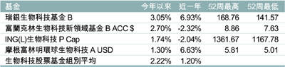 佔近今年以來榜首的瑞銀生物科技基金,主要投資於在環球生物技術行業內,參與研究、產品發展、生產及分銷的公司。
