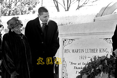 ■奧巴馬到馬丁路德金墓地獻花圈。 路透社