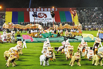 ■百呎巨龍及百頭醒獅的精彩表演,預祝北京奧運成功舉行。