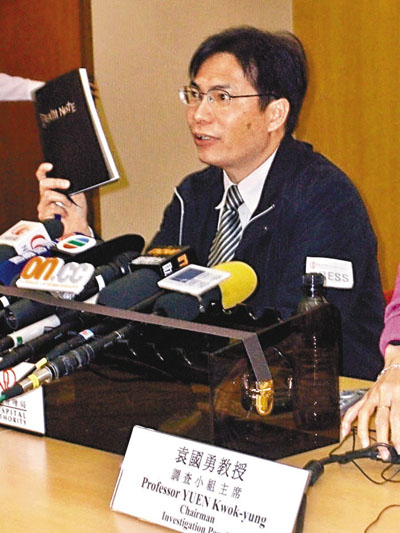 患貧血和肝病的男死者王潤泉於本月3日輸血後感染螢光假單胞菌,懷疑經輸血受感染,導致多個器官衰竭,本月7日不治。屯門醫院代表昨日約見死者家屬解釋剛完成的調查報告。不過,死者的弟弟王潤潮沒有陪同其他家人到屯門醫院,反而到醫管局大樓公布調查報告的記者會現場。