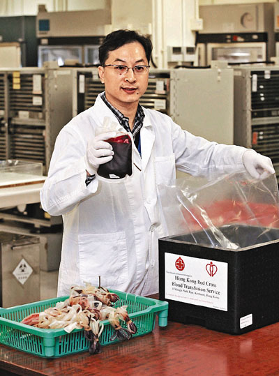 ■紅十字會輸血服務已重新設計血液包裹程序。 本報記者劉國權 攝