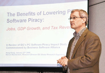 ■Jeffrey J.Hardee表示,中國內地若能在未來4年降低10%盜版軟件,可令中國資訊科技從業人口在4年內超越美國,居全球首位。本報記者聶曉輝 攝