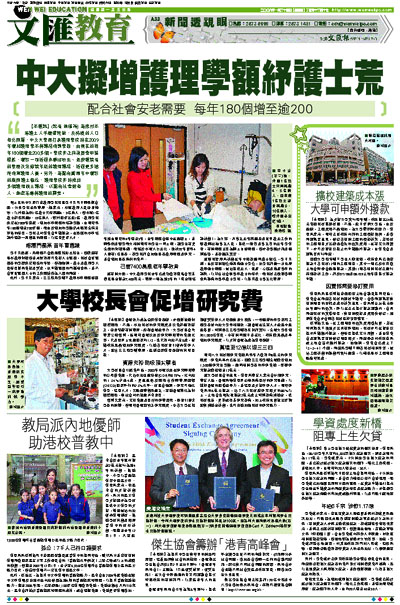 【本報訊】(記者 陳倩筠) 為應付本港護士人手嚴重短缺,及持續的人口老化問題,中文大學那打素護理學院將在2009年增加護理學本科課程培訓學額,由現在的每年180個增至200多個。學院亦正向教資會申請撥款,增設一項透過非聯招收生、並按報讀者的學歷決定修讀年級的護理課程,透過更多途徑培育護理人員。另外,為配合當局年中增設的顧問護士職位,護理學院亦將推出多個護理碩士課程,以配合社會對老人、急症等專科護理的需要。